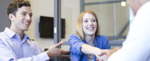Businessman shaking hands with client in meeting